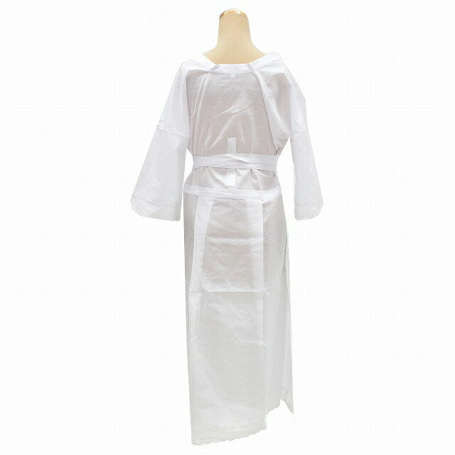白色に袖口がレースのタイプのワンピースタイプのスリップです。